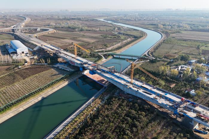图为俯瞰合龙后的南邓高速跨南水北调特大桥。(无人机照片) 夏青华 摄
