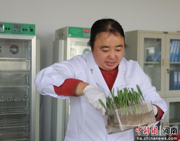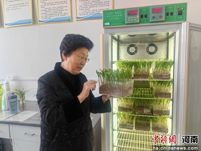 图为赵秀珍介绍本批次玉米种子发芽试验情况。刘鹏 摄