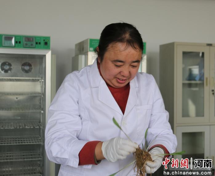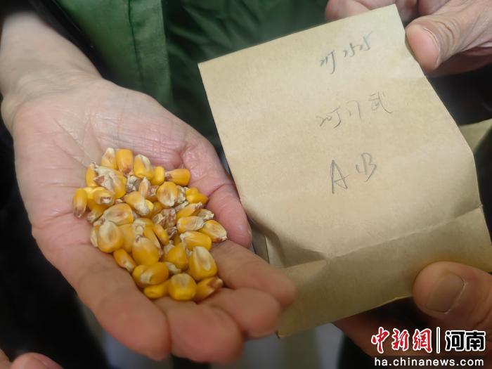 图为赵秀珍展示的滑丰种业玉米育种核心种质材料。刘鹏 摄