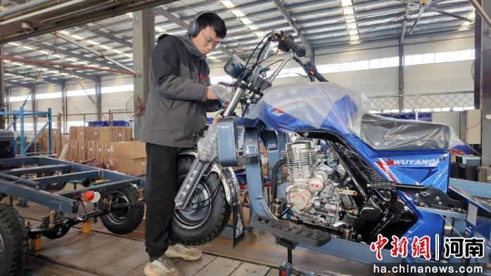 中新网河南新闻12月29日电(李海珠 王佳宁)安装、接线、装灯……在洛阳五羊三轮摩托车有限公司(以下简称五羊摩托)厂区内,工人们全力赶制年底发往海外的订单,一辆辆崭新的三轮摩托车正从生产线上依次下线。