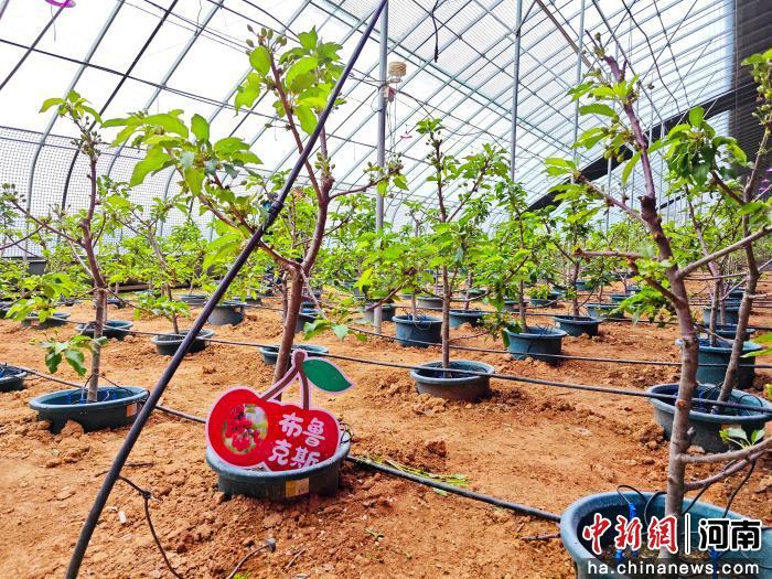 精密制造的重器中穿插着当地绿意盎然的小“甜蜜”。在新安县樱桃现代农业产业园的智能温室里,一株株盆栽樱桃树整齐排列,青涩的果子已挂满枝头。通过精准的环境控制,这些樱桃将在春节前后错峰上市。