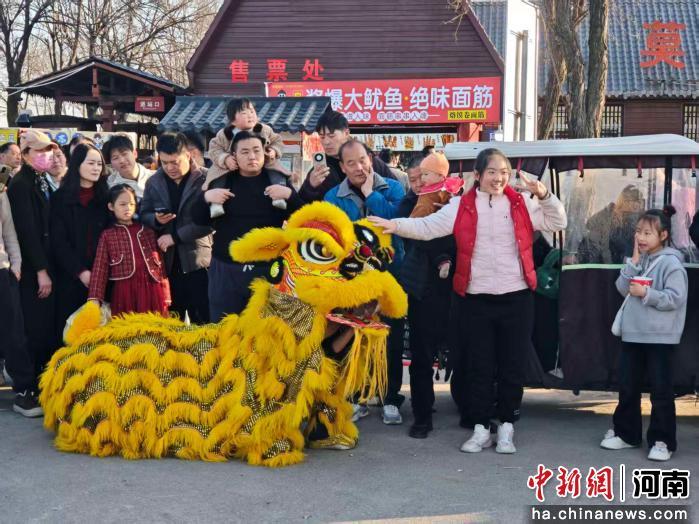 图为舞狮表演吸引游人拍照打卡。李海珠 摄