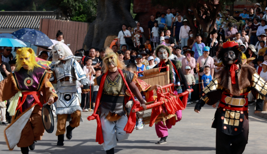 2025年首届全国大圣文化艺术周暨中国猴山猴王争霸赛期间,五龙口景区摇身一变成为沉浸式剧场。猴王争霸赛上,20名选手既复刻经典猴戏的灵动神韵,又大胆融入AI、魔术等创新元素,再加上猕猴在林间肆意穿行、与人嬉戏,造就“人在景里、身在戏中”的独特体验。此外,“大圣文化进校园”活动,让文化传承在欢声笑语中生根发芽。
