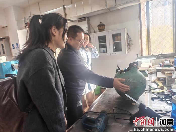 中新网河南新闻1月20日电 (张楠)“修文物,既要手上有老功夫,也要心里有新方法。”在河南博物院的文物科技保护中心,“05后”大学生林怡然透过高倍显微镜,观察一件青铜鼎的微观锈蚀结构。另一侧,X射线荧光光谱仪的分析数据正在生成,为下一道修复工序提供“科学处方”。