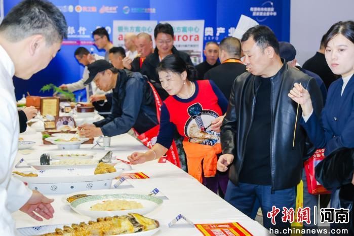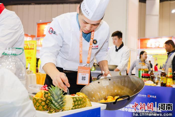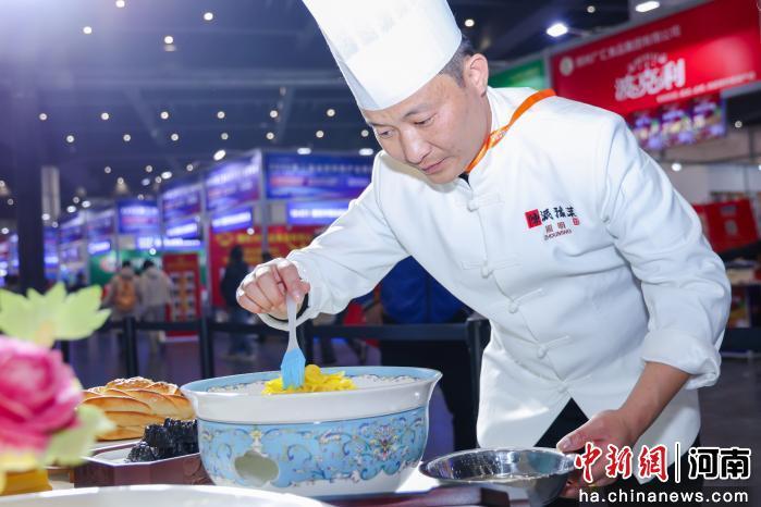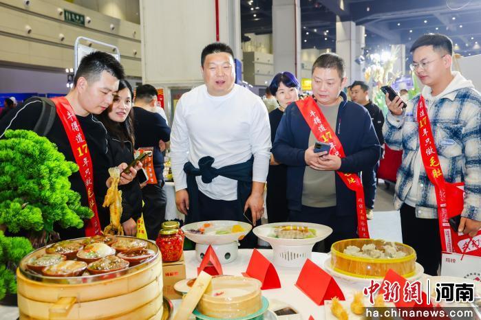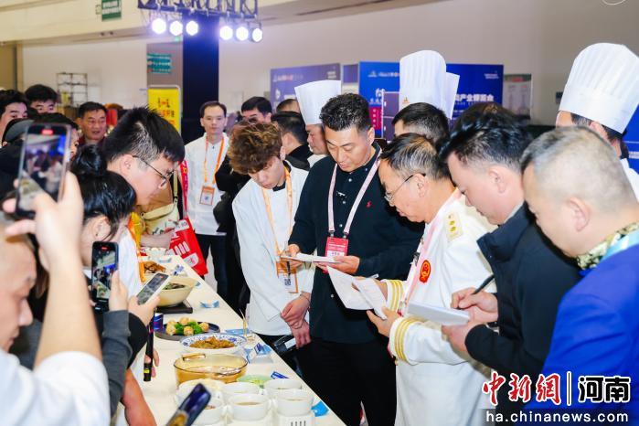 10月28日,2025第二届全球肉类产业博览会在河南郑州举行,期间,2025中国豫菜厨师节暨中原烹饪技艺非遗菜品展演以及2025首届中原乡厨乡宴大赛暨中原地方特色筵席展同步举行。开封宋宴、洛阳水席、陕州宴……展演现场,多位豫厨进行厨艺对决,带来各具特色的地方美食,吸引食客排队品尝。