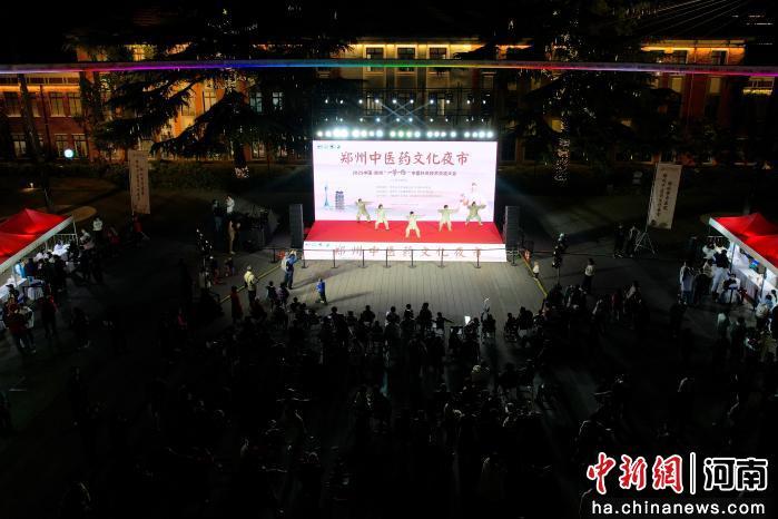图为郑州中医药文化夜市活动现场。(无人机照片)王士豪 摄