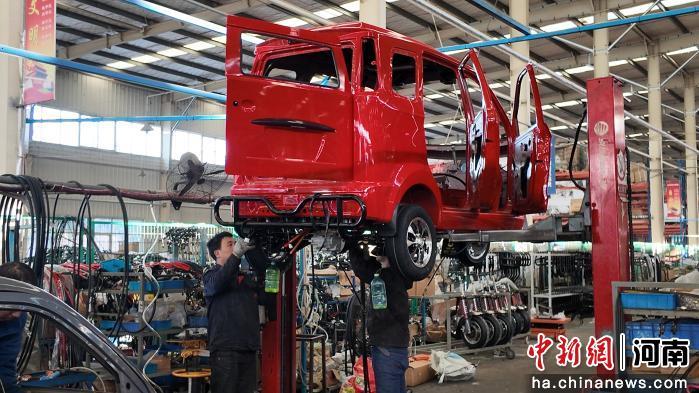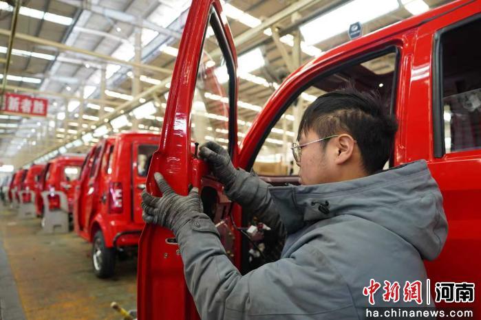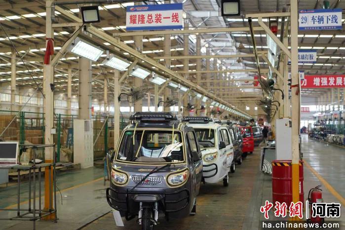 12月29日,在洛阳珠峰华鹰三轮摩托车有限公司的加工车间,工人们正在生产线上有序作业,平均15分钟可组装完成一辆三轮摩托车。该公司拥有“珠峰”“建设”“耀隆”三大品牌,销售网络遍布全国并出口全球多个国家和地区。