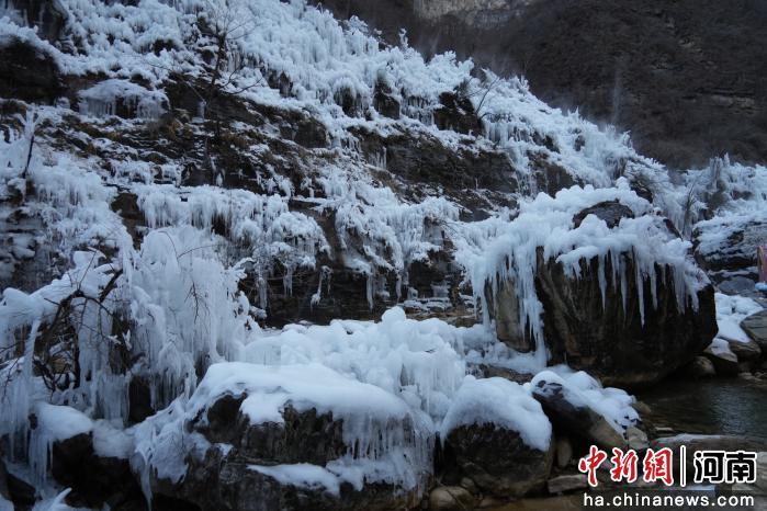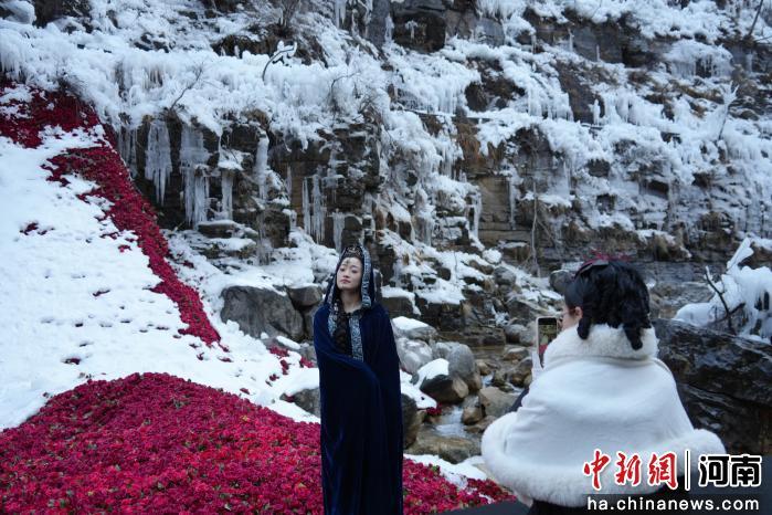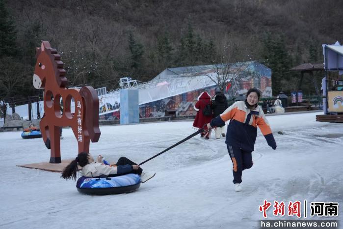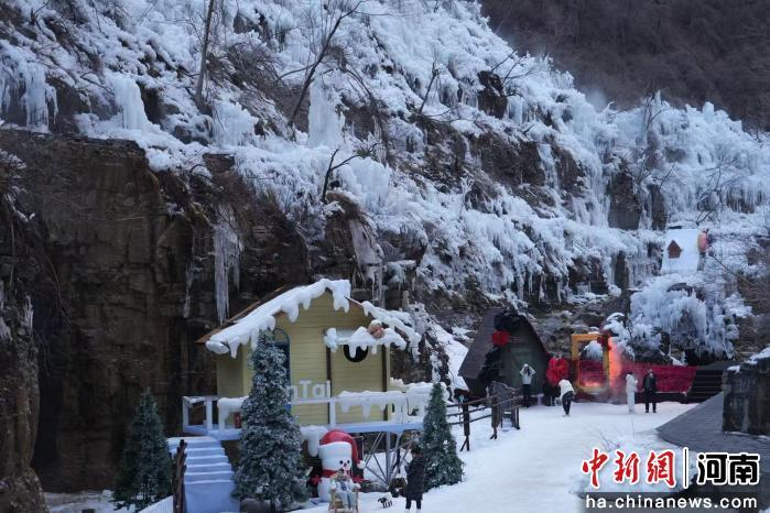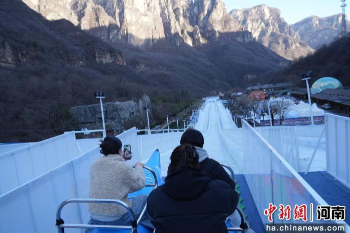 近日,河南焦作云台山风景区冬日景致上新,游客纷纷前来体验冰滑梯、雪圈、冰瀑、雪橇等项目,享受冬日限定的“冰”纷乐趣。