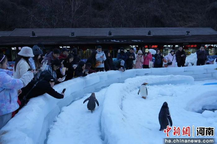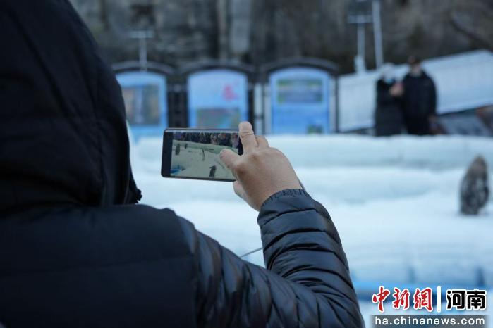 图为游客在拍摄企鹅。连晨宇 摄