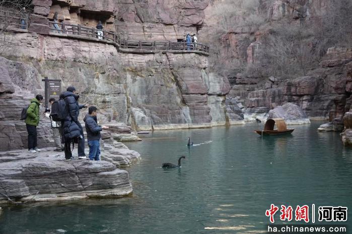 近日,人民拍客“太行·探城记”活动走进河南焦作云台山风景区,用镜头记录红石峡丹崖、碧水与蓝天、游人相映成趣的生动画面。