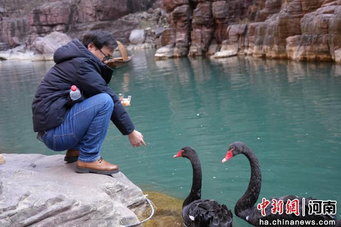 图为游客在投喂黑天鹅。连晨宇 摄