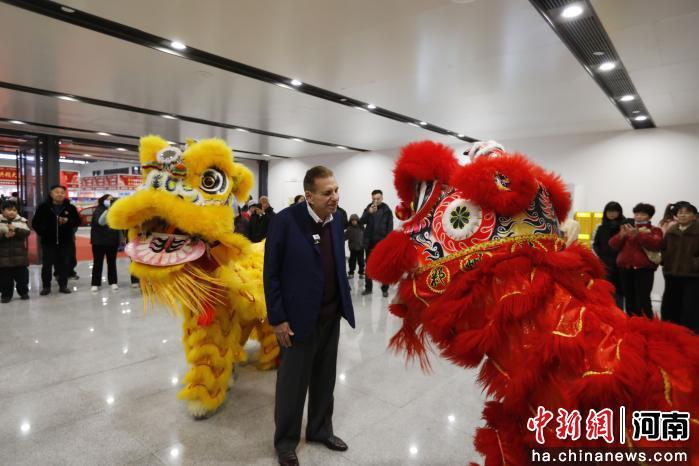 图为约翰·卡萨达体验中国传统舞狮表演。陈贵洋 摄