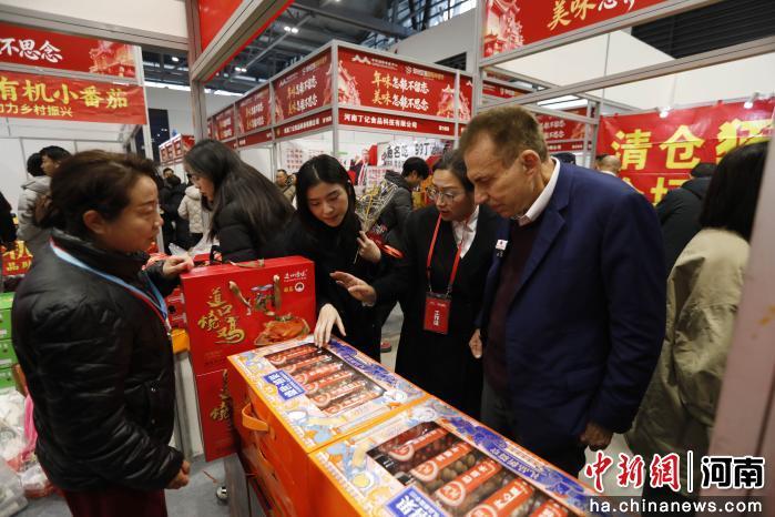 图为工作人员向约翰·卡萨达介绍河南特产。陈贵洋 摄