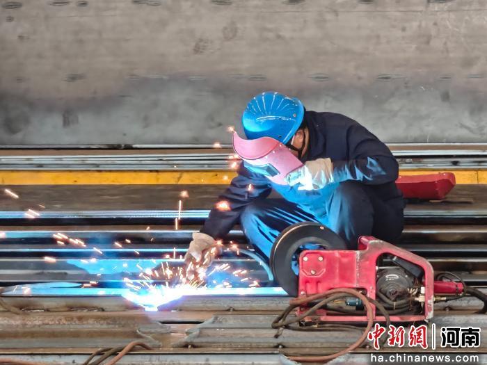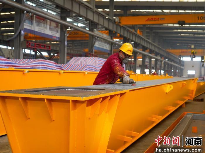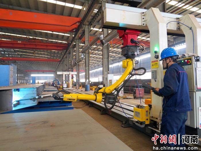 图为工人在操作机器人焊接起重机主梁。王士豪 摄