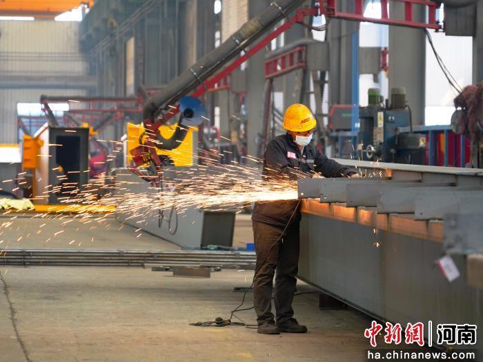 图为工人在打磨处理起重机产品外观。王士豪 摄