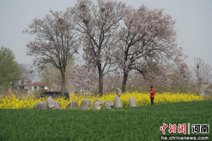 图为游客在北宋皇陵欣赏春景。经晓佳 摄