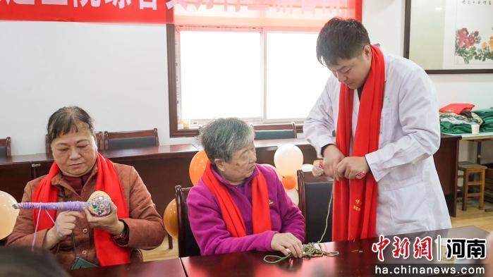 此次活动以健康守护为核心。结合洛阳秋冬干燥、温差大的气候特点,医护人员带来的《健康课堂》节目,聚焦“老年人秋冬健康防护”,用通俗易懂的语言讲解感冒、高血压、糖尿病等高发疾病的预防技巧,还分享了合理用药常识与饮食调理方案。在随后的DIY艾灸锤制作环节,医护人员不仅介绍了艾灸锤“温通经络、缓解关节酸痛”的养生功效,还一步步演示填充艾叶、缝合棉布套、固定木柄的步骤,和老人们一起体验了手工乐趣。