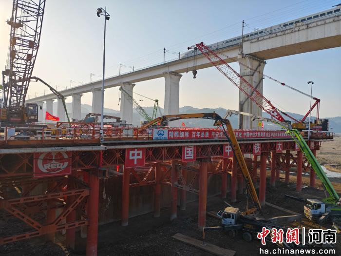 中新网河南新闻1月12日电 随着最后一立方米混凝土注入钢筋骨架,历经35小时连续作业,由位于河南郑州的中铁大桥局一分公司承建的沿江高铁宜涪段关键控制性工程——宜昌长江公铁大桥建设迎来关键节点。1月10日晚,大桥南岸江中主塔巨型承台完成首次浇筑,标志着该桥水下基础施工取得突破性进展,全面转入主塔墩身建设阶段。