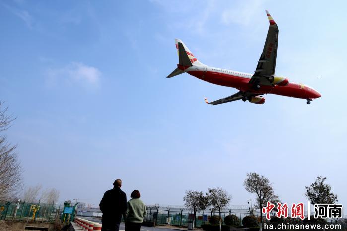 3月16日,在位于郑州航空港经济综合实验区的新晋网红打卡点“航线里”等飞机起落观赏地,市民用手机定格与飞机近距离同框瞬间,以独特方式邂逅“云端的浪漫”。