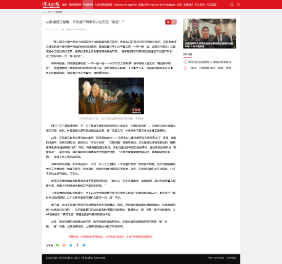 11月28日,《墨西哥华文时报网》采用中新社河南分社稿件,题目:从殷墟到三星堆,文化遗产研学何以让历史“说话”?