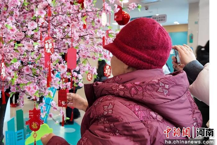 活动现场,该中心老年大学书法班学员挥毫泼墨,写春联、送福字,为社区居民送上新年祝福。现场还设置了“幸福树”,众多居民在心愿卡上写下自己的新年愿望并挂在“幸福树”上,字里行间满是对美好生活的祝福。